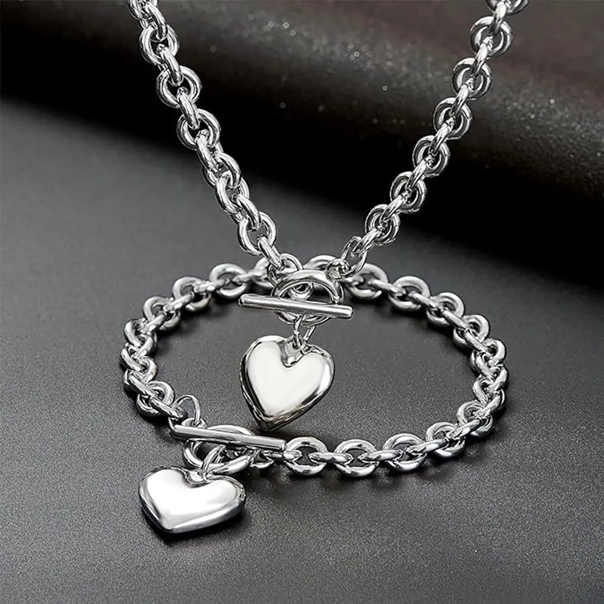 Dieses Armband verbindet eleganten Silberglanz mit einer filigranen Herzform, die sich sanft an das Handgelenk schmiegt. Die polierte Oberfläche, die dezente Rundung und die feinen Proportionen schaffen ein harmonisches Schmuckbild voller Anmut. Subtile Details, ein leichtes Funkeln und eine moderne, dennoch klassische Kontur verleihen dem Stück eine feminine Ästhetik, die Emotion und Eleganz miteinander verbindet – perfekt für Alltag und besondere Momente.