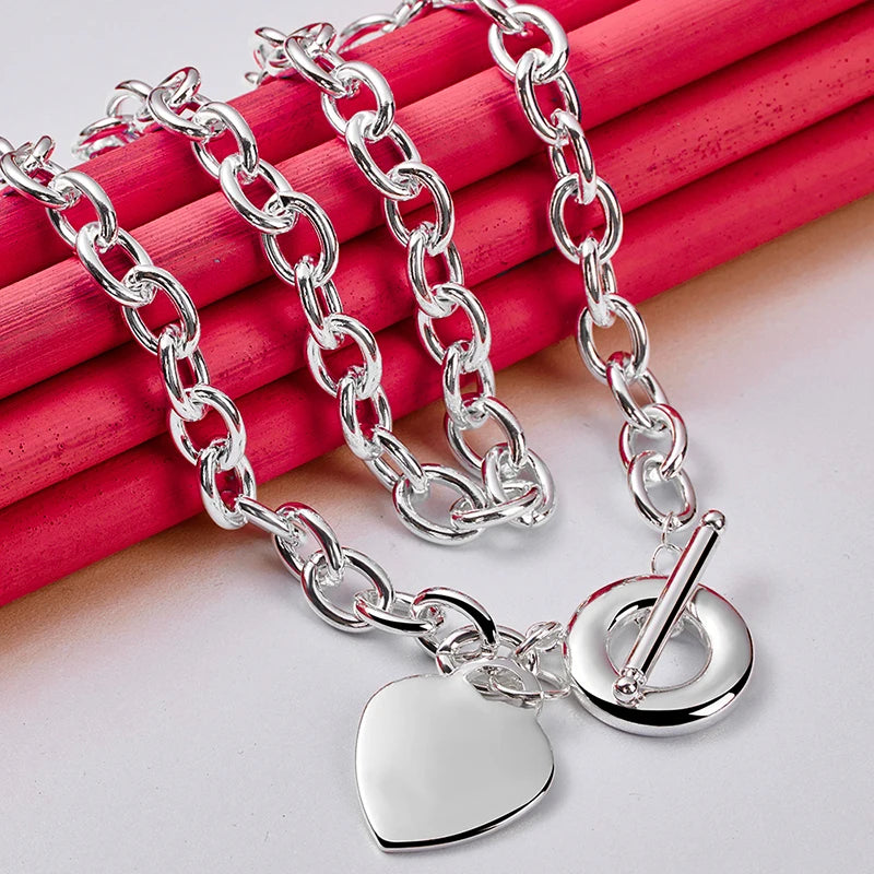 Dieser großzügig gestaltete Anhänger verbindet eine weich fließende Herzform mit edlem Silberglanz und einer polierten Oberfläche, die ein feines Funkeln erzeugt. Die sanfte Rundung, die dezente Linienführung und die ausgewogene Proportion verleihen dem Schmuckstück eine feminine, zugleich zeitlose Ausstrahlung. Die klare Struktur, das subtile Detail und die ästhetische Anmutung schaffen ein Schmuckbild, das Emotion und Eleganz auf natürliche Weise miteinander verbindet.