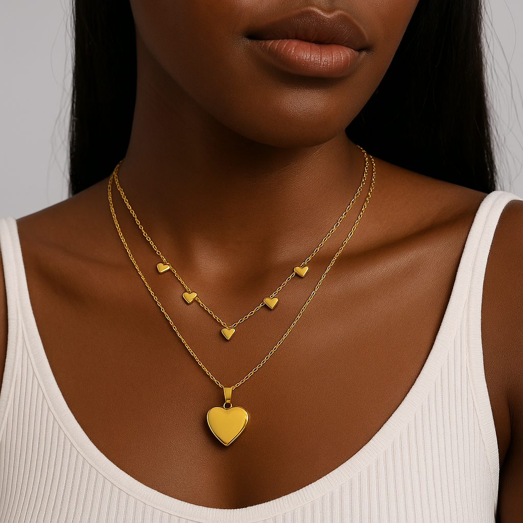 Dieses filigrane Accessoire verbindet eine sanfte Herzform mit einem warm schimmernden Goldton, der sofort eine emotionale Tiefe erzeugt. Das dezente Design passt mühelos zu verschiedenen Momenten des Alltags und unterstreicht eine elegante, feminine Ausstrahlung. Die Verbindung von Schmuckkunst, glänzenden Details und einer fein gearbeiteten Form verleiht dem Anhänger eine authentische, gefühlvolle Präsenz.