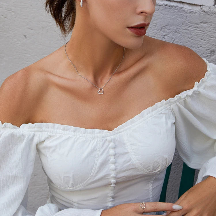 Diese feine Komposition verbindet sanften Silberglanz mit einer eleganten Rundung, die sich zart an den Hals der Trägerin schmiegt. Die polierte Oberfläche, ein dezentes Funkeln und die filigrane Formgebung verleihen dem Schmuckstück eine moderne, zugleich zeitlose Anmut. Ein fein gearbeitetes Detail setzt einen emotionalen Akzent und schafft eine Verbindung zwischen Ästhetik, Symbolik und zarter Eleganz.